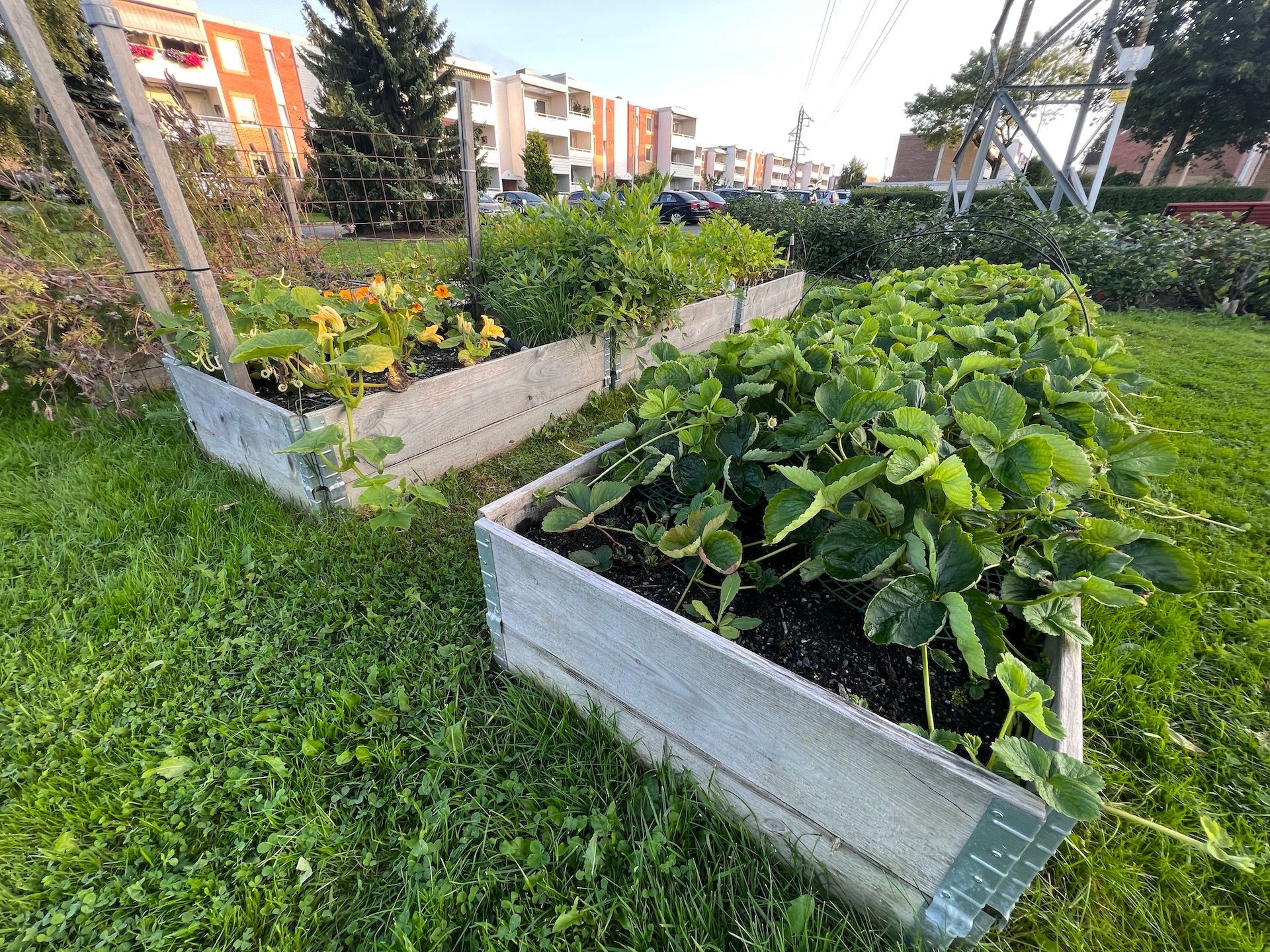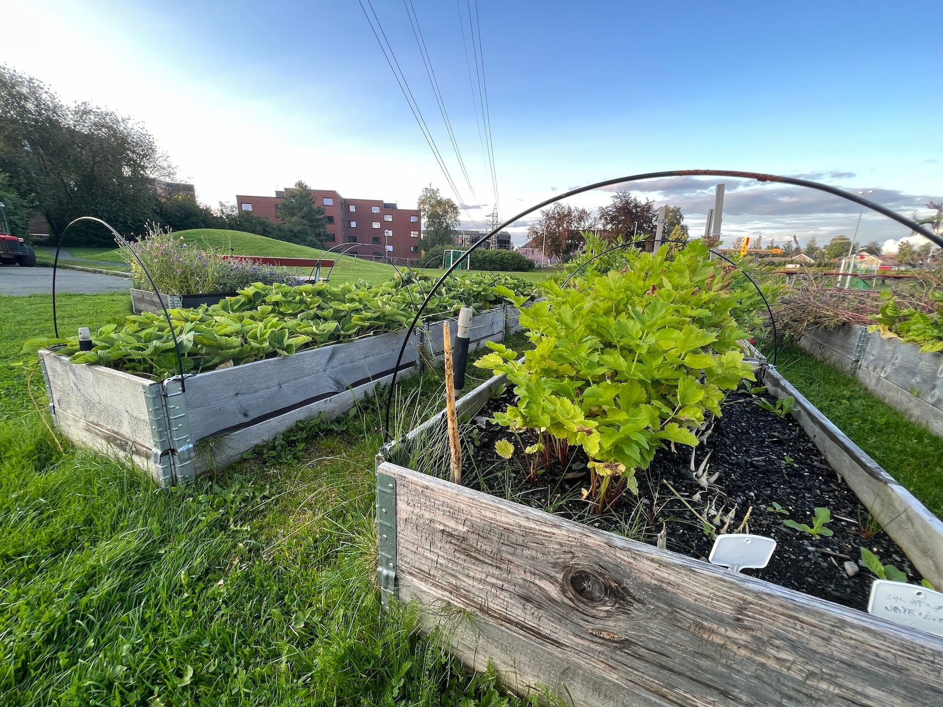 Det er etablert en felleshage med ti pallekarmer i området ved vaktmestergarasjen. Her vil det bli plantet et variert utvalg nyttevekster hvert år.